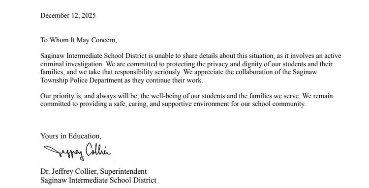 Saginaw ISD Superintendent Dr. Jeffrey Collier released the following statement: