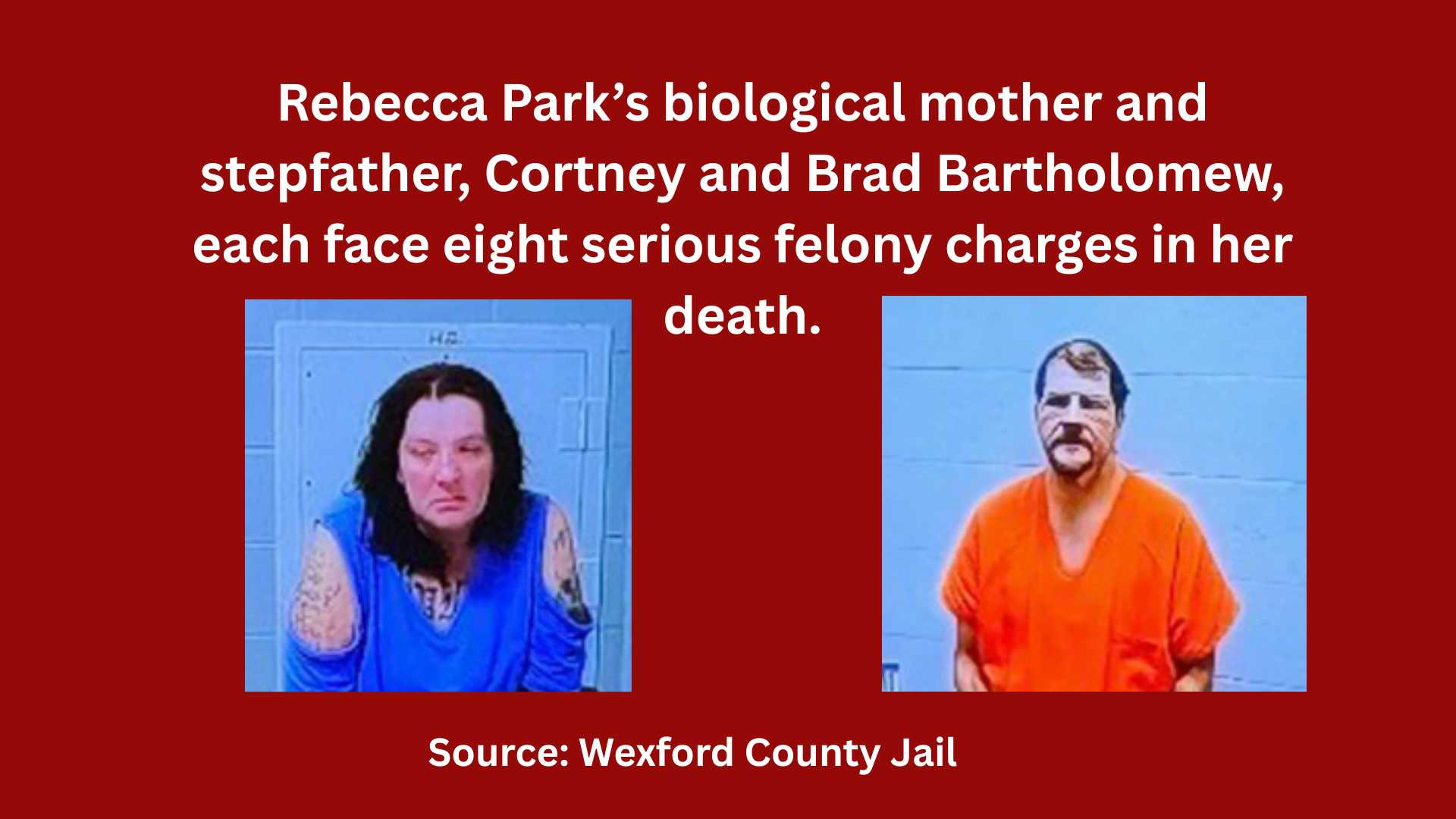 WEXFORD COUNTY, Mich. — The biological mother and stepfather of Rebecca Park were arraigned Tuesday on a series of felony charges tied to Park’s death, which investigators say occurred while she was near full-term pregnancy.