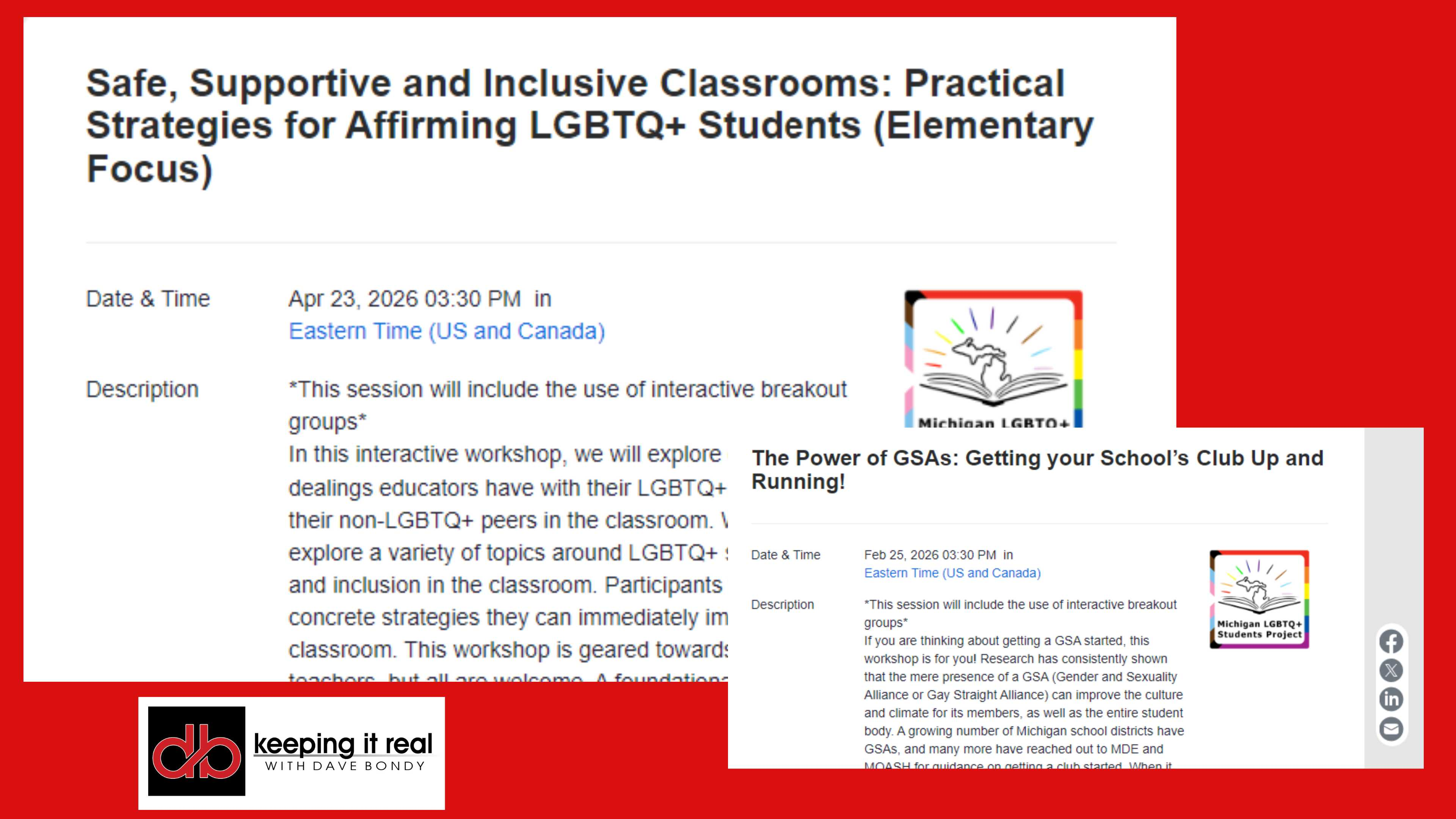 The Michigan Department of Education has circulated information to school boards across the state promoting professional development workshops for school staff focused on LGBTQ+ students for the 2025–26 school year.